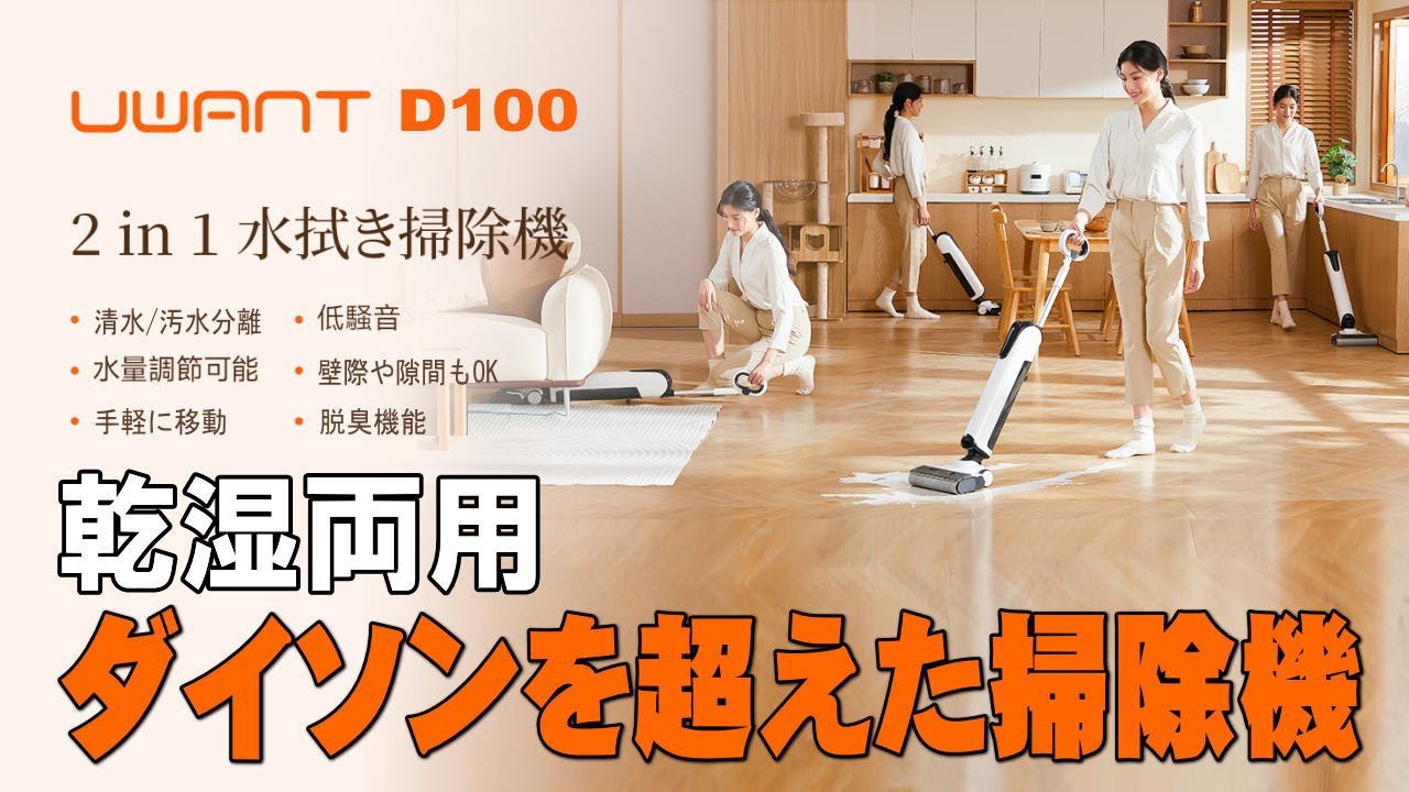 | タイトル | 【時短清掃】水拭きしながら吸い込みも出来る掃除機、UWANT D100 乾湿両用フロアクリーナー、掃除が楽に早く終わります。 |