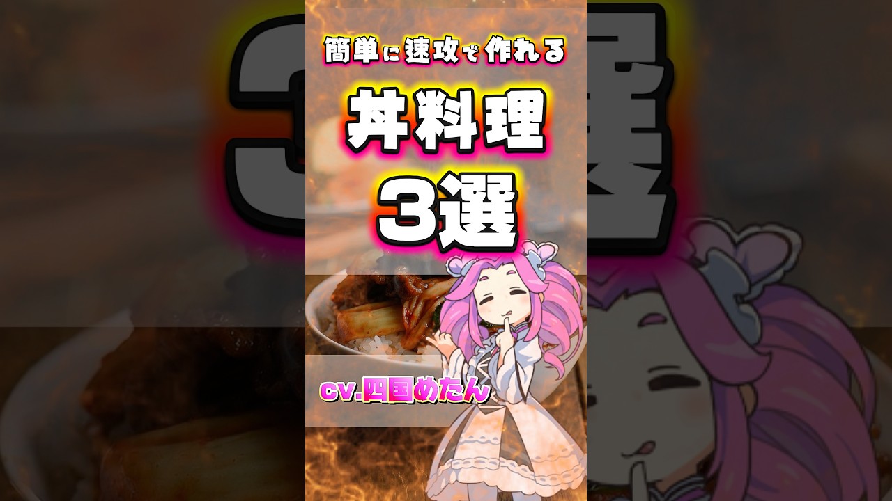 タイトル【雑学】簡単に速攻で作れる丼料理3選 #shorts #雑学 #四国めたん #ボイスボックス #節約 #時短 #時短レシピ #時短料理 #時短メニュー #豚キムチ #親子丼 #卵かけご飯